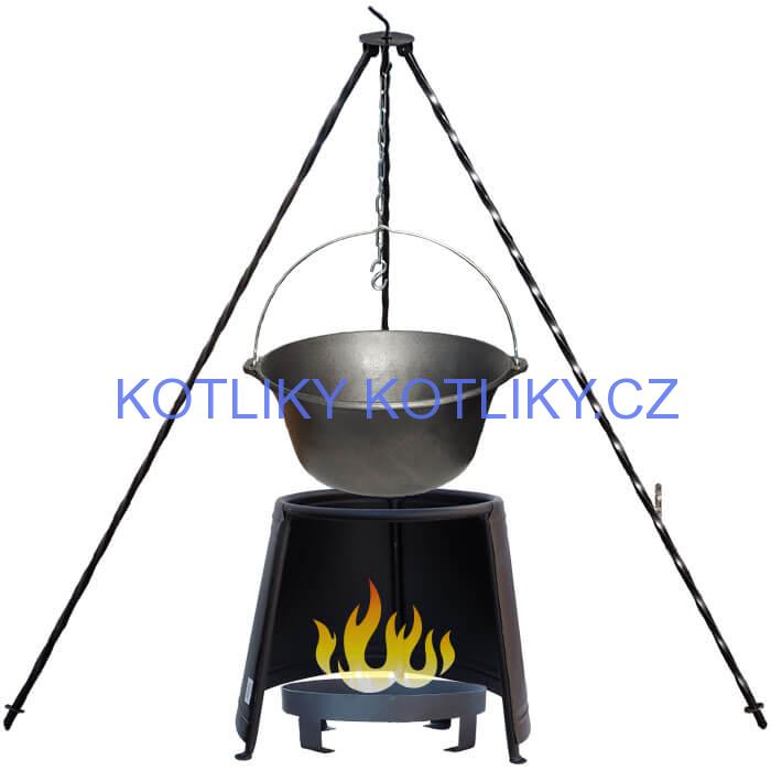 - Litinový kotlík 7,2 L + chránič plamene 32 cm + ohniště 36 cm + trojnožka 1,2 m
